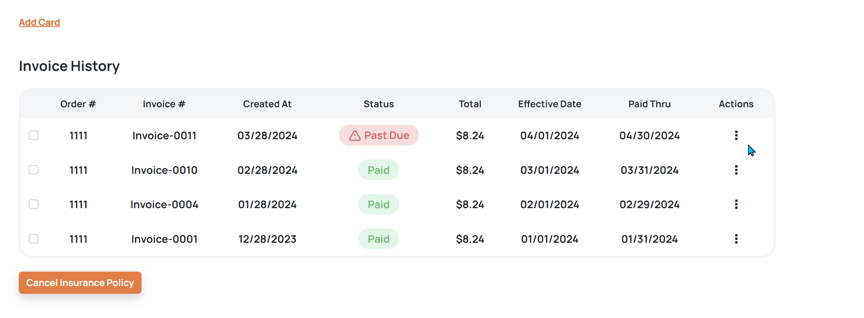 2) Click on "Billing" tab3) Find the "Past Due" Invoice and click on Actions and select "Pay Invoice"